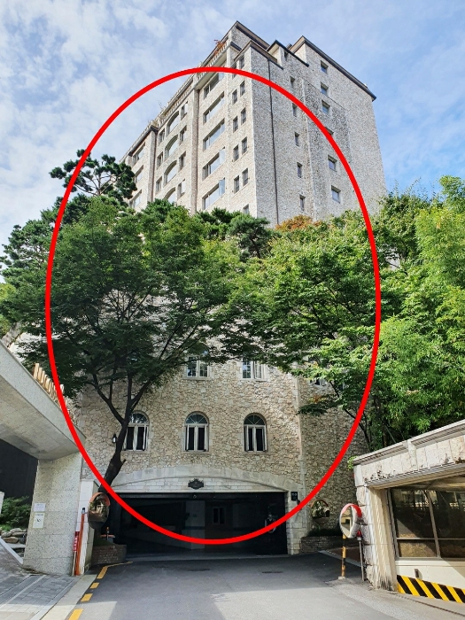 [건물구조] 철근콘크리트구조 경사스라브지붕 지하3층, 지상12층 건물 내 제4,5층 제502호로서외벽: 석재 마감 등,내벽: -,창호: 샷시창호 등임.