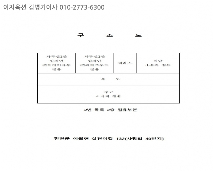 | 제시외건물 | 살천이길 132-1 | 기계기구 | 10식 ㎡ (3.03평) |