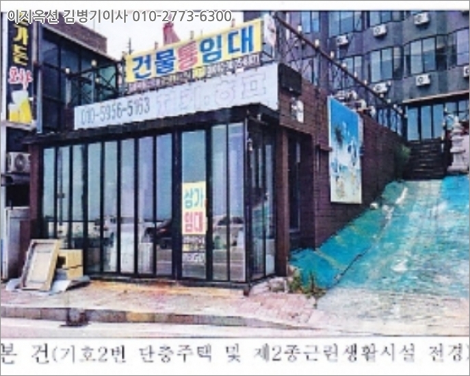 [건물구조] 기호(2):세멘트블럭조 스레트지붕 단층 건물로 외벽:치장벽돌마감, 페인팅마감 등 내벽:목재붙임 등 바닥:콘크리트마감 등 창호:샷시창호기호(5):철골조 평스라브지붕 3층 건물로 외벽:드라이비트마감, 페인팅마감 내벽:벽지도배마감, 타일붙임, 인테리어마감 및 몰탈마감 등 바닥:타일붙임, 몰탈마감 및 장판깔기 등 창호:샷시창호기호(5-1):조적조 판넬지붕 단층 건물로 외벽:페인팅마감 및 판넬마감기호(9):벽돌구조 슬라브지붕 단층 건물로 외벽:페인팅마감 내벽:인테리어마감 등 바닥:타일붙임 등 창호:샷시창호 [이용상태] 기호(2);근린생활시설로 이용중임.