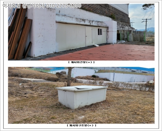 [제시외 물건] 후첨 "지적 및 건물개황도", "사진용지" 참고.