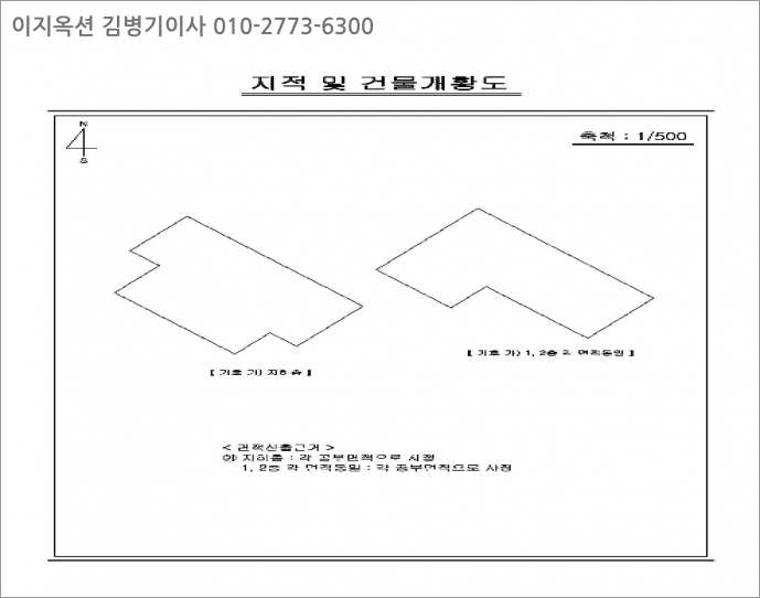 [형태/이용상태] 기호 1, 2) 2필 일단의 세장형의 토지로서, 남서측 하향완경사지에 형성된 상업용 건부지로이용중임.
