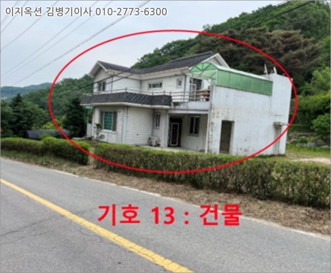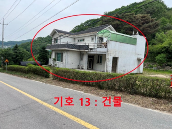 [건물구조] 기호 13 - 철근콘크리트조 철근콘크리트경사지붕 2층건으로외벽 : 목재사이딩 및 몰탈위 페인팅 마감 등내벽 : 벽지도배, 타일붙임, 목재 붙임 등창호 : 플라스틱 이중창호 등 [이용상태] 1,2층 모두 단독주택으로 1층 : 방3, 거실, 주방, 화장실겸 세면장3, 보일러실 등2층 : 방2, 거실겸 주방1, 화장실겸 세면장1, 계단실 통로 등 [설비내역] 위생설비, 급배수설비, 심야축열식 전기보일러에 의한 온수난방설비 갖추고 있으며, 태양광설비 갖추고 있고, 건물가격에 포함평가하였습니다.