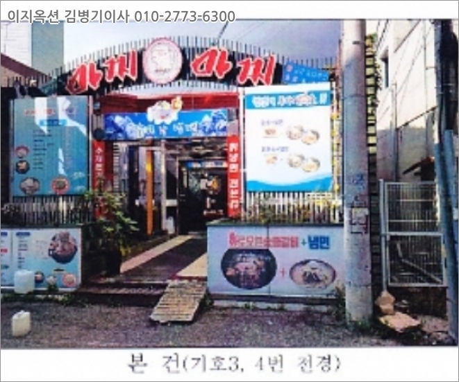 [참고사항] - [건물구조] <일련번호2>목조 스레트지붕 및 철근콘크리트조 슬래브지붕 2층 건물로서,외벽 : 페인트 등내벽 : 페인트 등창호 : 샤시;창호<일련번호4>경량철골조 아연판넬지붕 단층 건물로서,외벽 : 페인트 등내벽 : 벽지, 타일 등창호 : 샤시창호 [이용상태] 일련번호2 : 1층 (점포, 식당), 2층(공실)