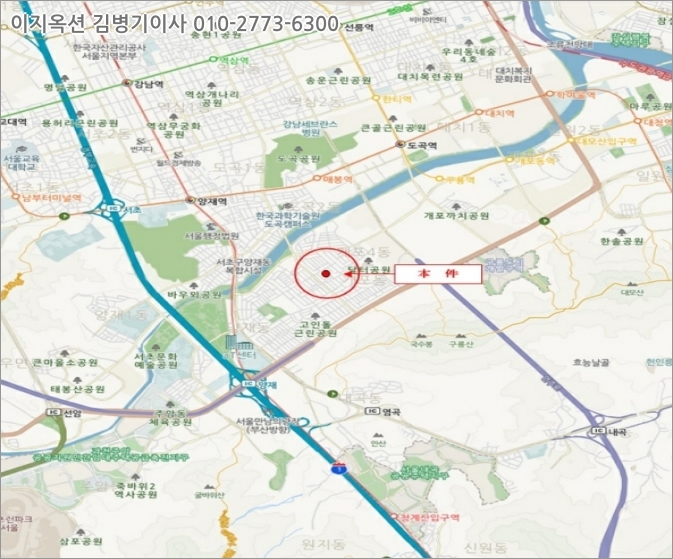 [교통상황] 본건까지 차량진입이 가능하며, 인근에 노선버스정류장 및 지하철역 양재시민의숲역(신분당)