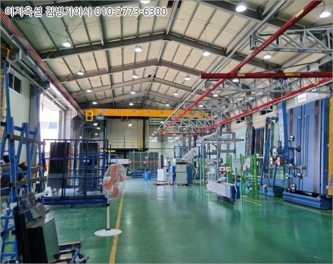 4) 기계/기구의 현상=본 기계기구는 알미늄창호, 커튼월 등 철구조물과 복층유리 가공. 생산설비 등으로 현재 가동중에 있음.