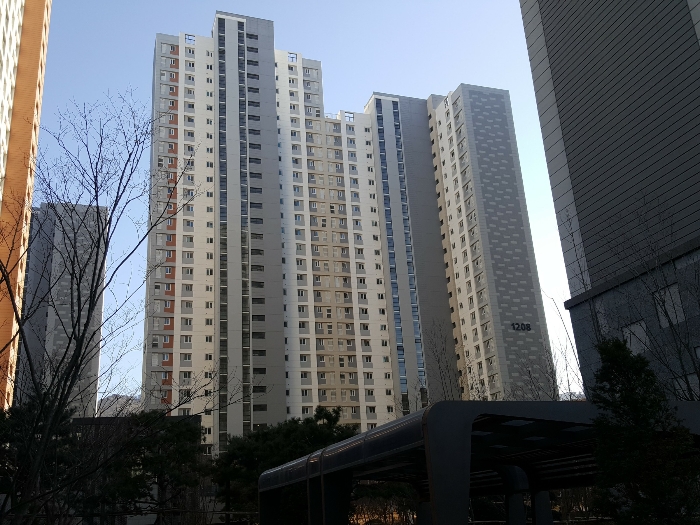 [건물구조] 철근콘크리트구조 (철근)콘크리트평지붕 28층건 내 23층 2302호로서, 외 벽 : 시멘트몰탈위 페인트,일부 석재 등 마감.