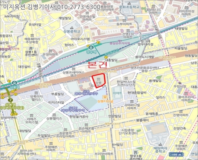 [교통상황] 본건까지 제반차량의 출입이 원활하며 인근에 노선버스정류장이 소재하며 본건 지근거리에 "상봉역"과 "망우역"등이 소재함.