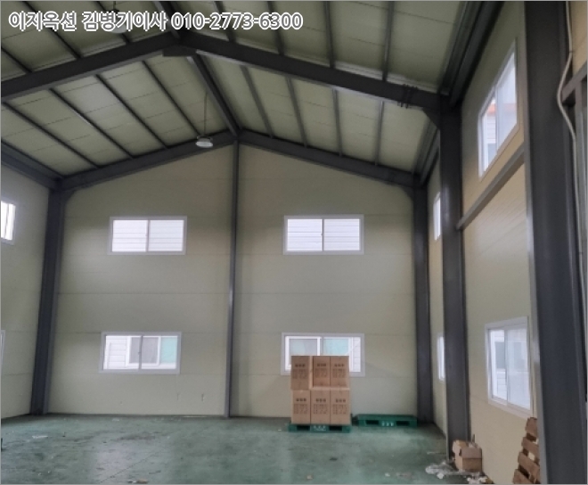 다) 일반철골구조 판넬지붕 단층건물(층고6m)으로서벽체 : 판넬붙임 등 마감바닥 : 하드너 마감천정 : 철골트러스 노출등창호 : 하이샤시 창호창고입니다.