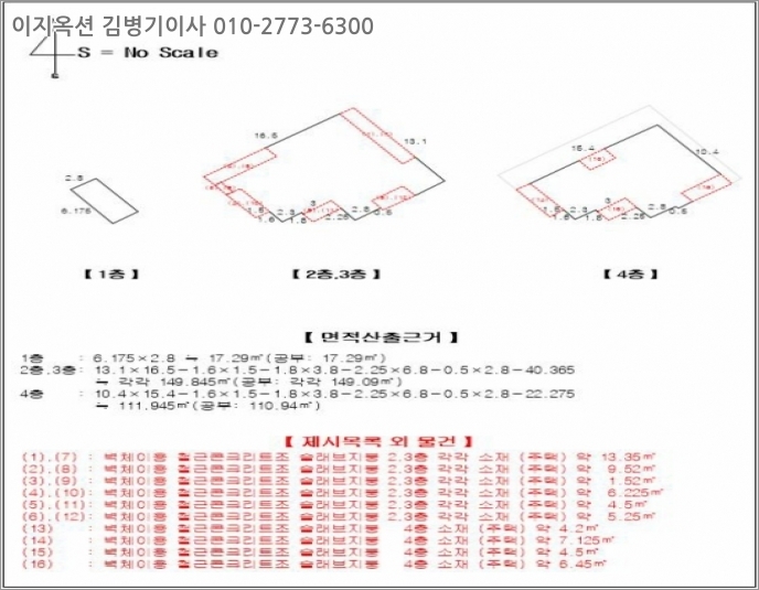 [부합물/종물] 별첨 "건물개황도"와 같이 제시외물건[(1)-(16)]이 소재함.