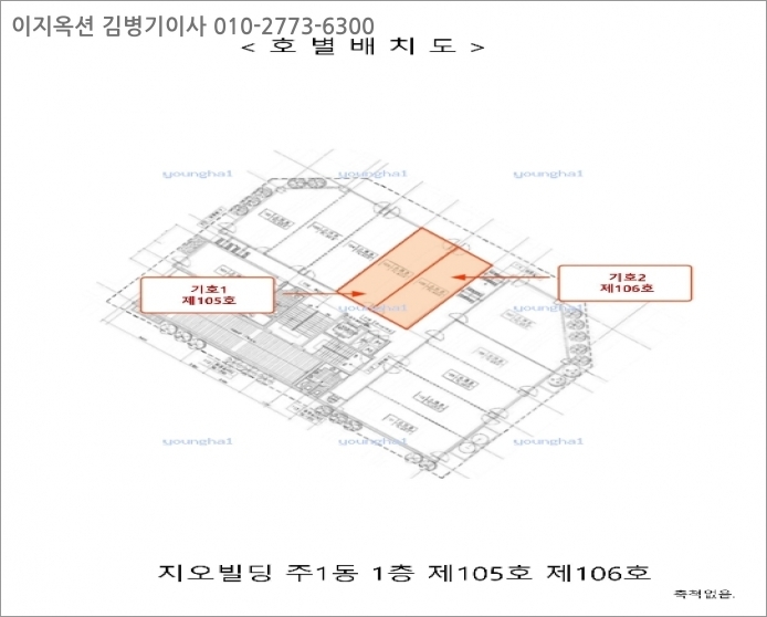 [건물구조] 철근콘크리트구조 콘크리트지붕 지하1층 지상3층 내 1층 105호, 106호외벽: 외장석재 뭍임 및 강화유리 등 마감.
