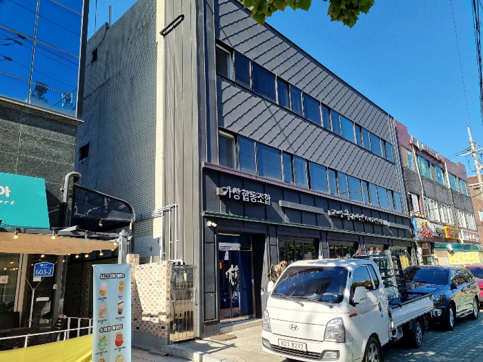 [건물구조] 철근콘크리트조 평스라브지붕 3층 건물로서,외벽 : 복합판넬, 타일붙임, 몰탈위 페인팅 마감 등,창호 : 새시창호 등임.