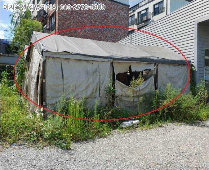 [제시외 물건] 본건 토지 기호(1) 위 지상에는 소유자 미상의 제시외 건물 등이 소재하며 상세내역은 후첨 "지적 및 건물개황도"와 "현황사진" 참조 바람.