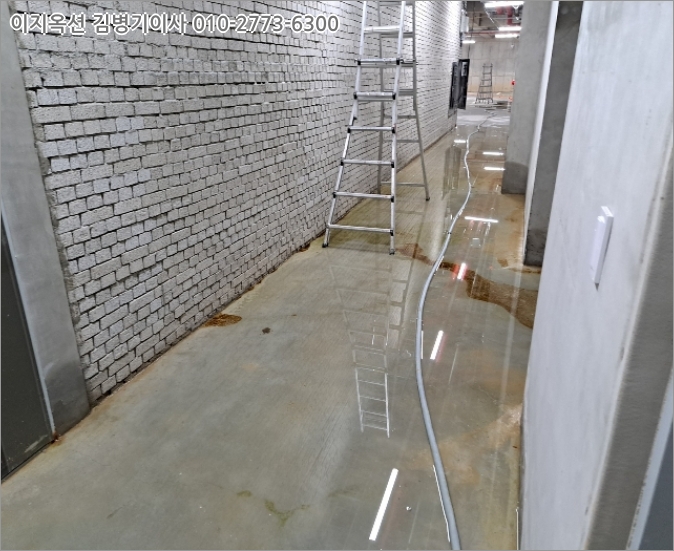 대상물건2 지하1층은 바닥에 물이 고여 있으나, 물이 고여 있는 원인은 침수 또는 누수인지를 알수가 없음.(사진 참조)