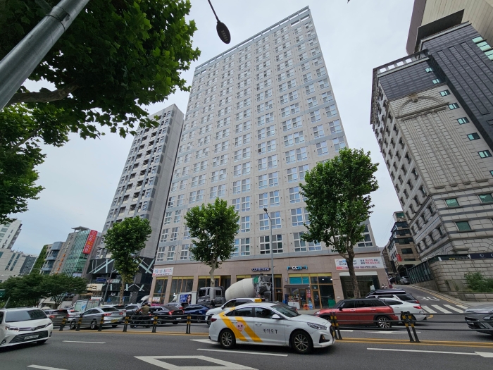 [건물구조] 구조 및 규모 : 철근콘크리트구조 (철근)콘크리트지붕 지하 5층 / 지상 17층외벽 : 석재붙임 및 일부 몰탈위페인팅 마감 등내벽 : 벽지도배 및 일부 타일 마감 등창호 : 로이복층유리 하이새시 창호 마감 등임.
